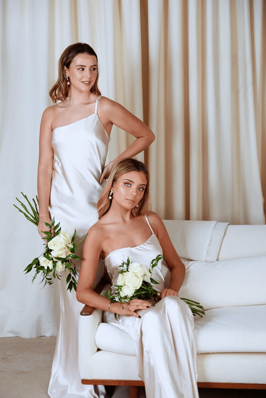The Amelia dress has all the class and elegance…featuring a one shoulder design with adjustable straps. It effortlessly skims every figure and drapes elegantly to the floor. This style can be worn with a strapless bra. Pair your bridesmaids in our other matte oyster options for the ultimate mix and match look.