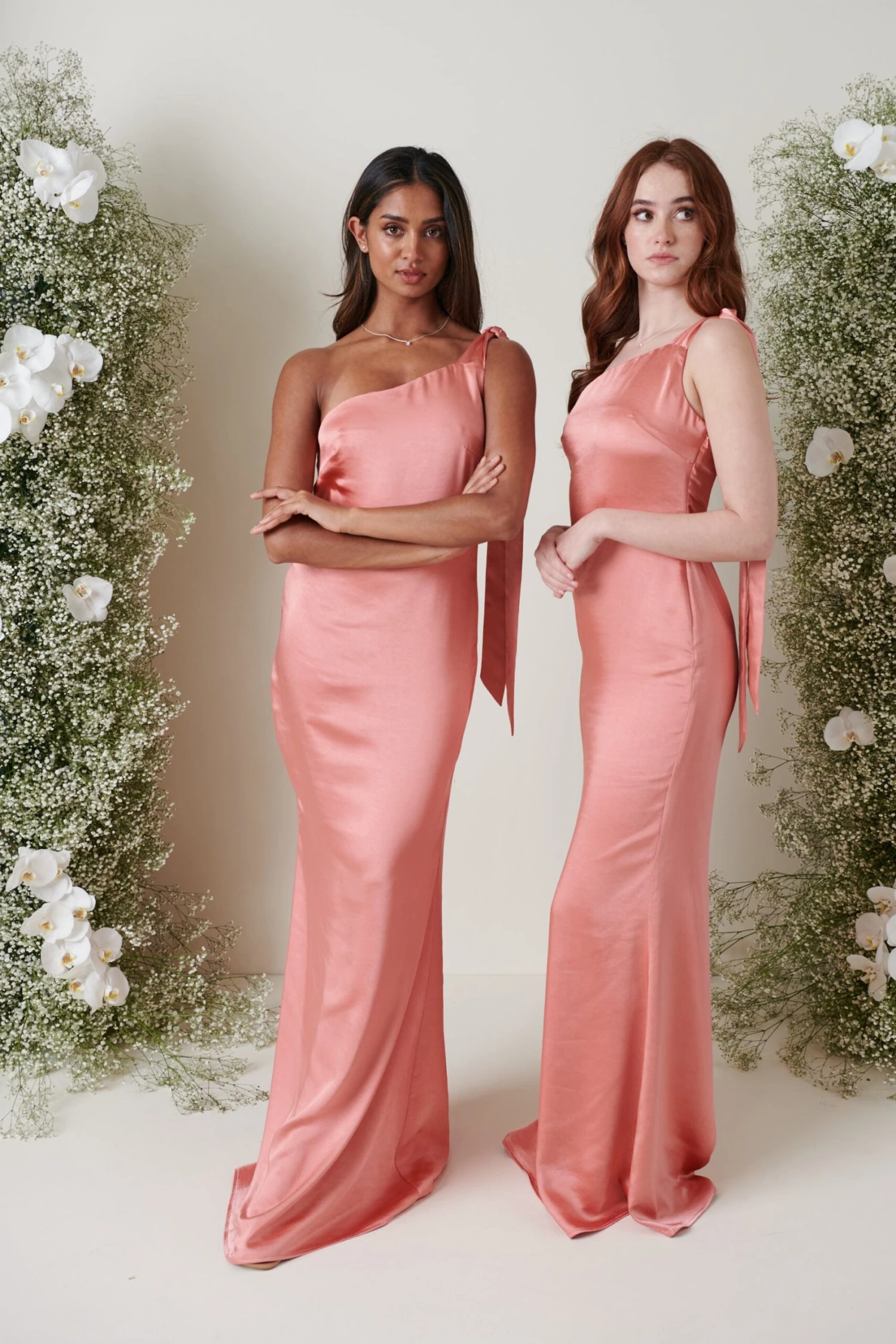 Pair with our other satin apricot pink dresses for a modern mix and match bridesmaid look.