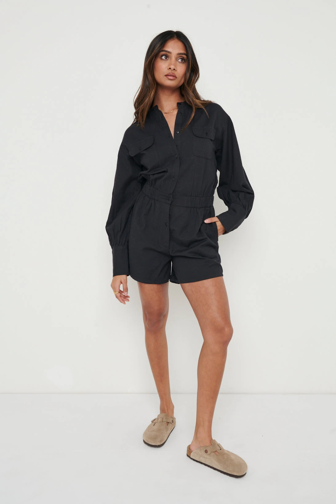 Bennie Collared Playsuit – Black