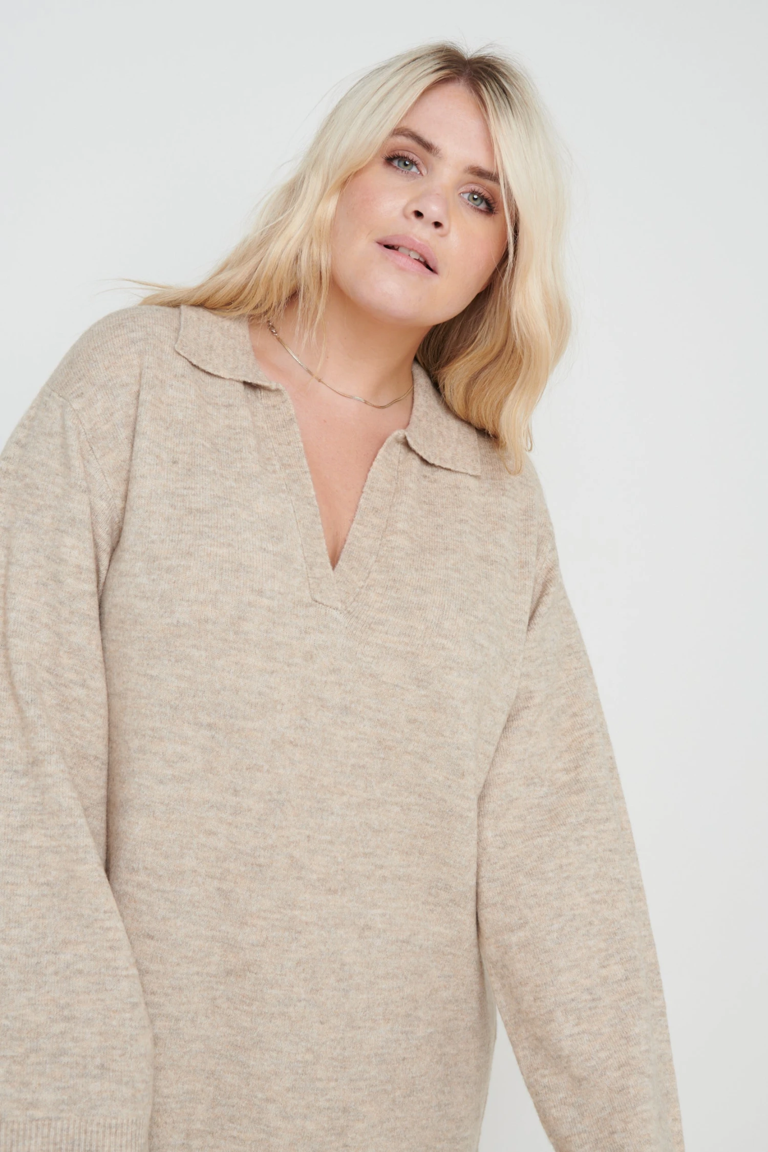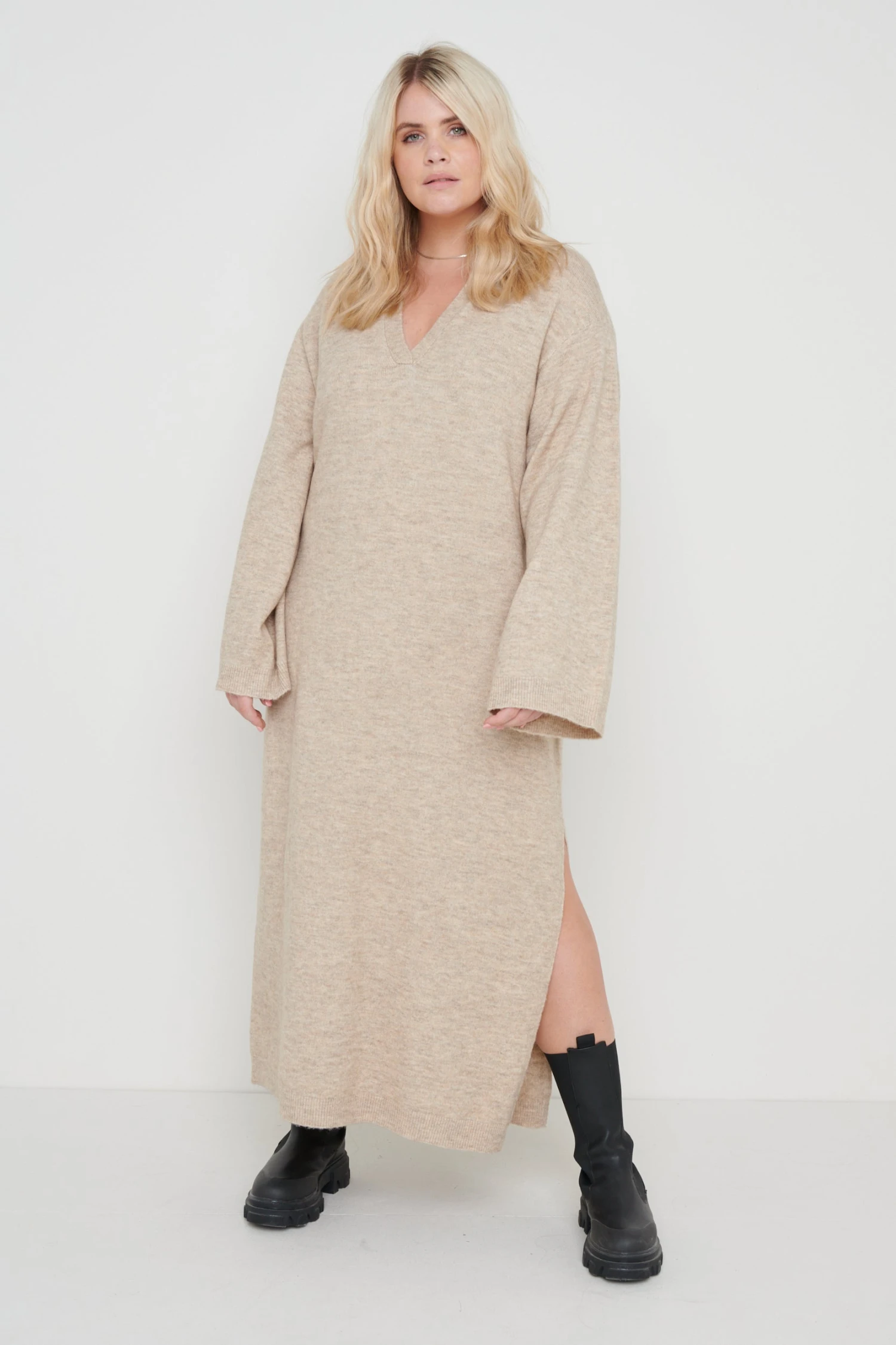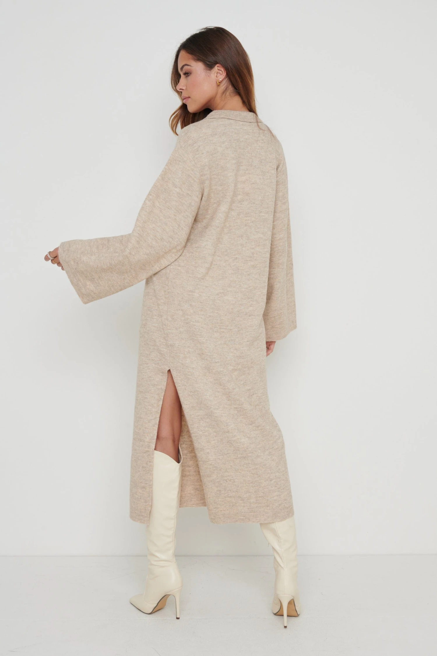 Featured from our Maximal Minimalism September October collection. This midaxi-length sweater dress has a cozy silhouette made from a fluffy knit. Style with chunky boots for the perfect day to day outfit.