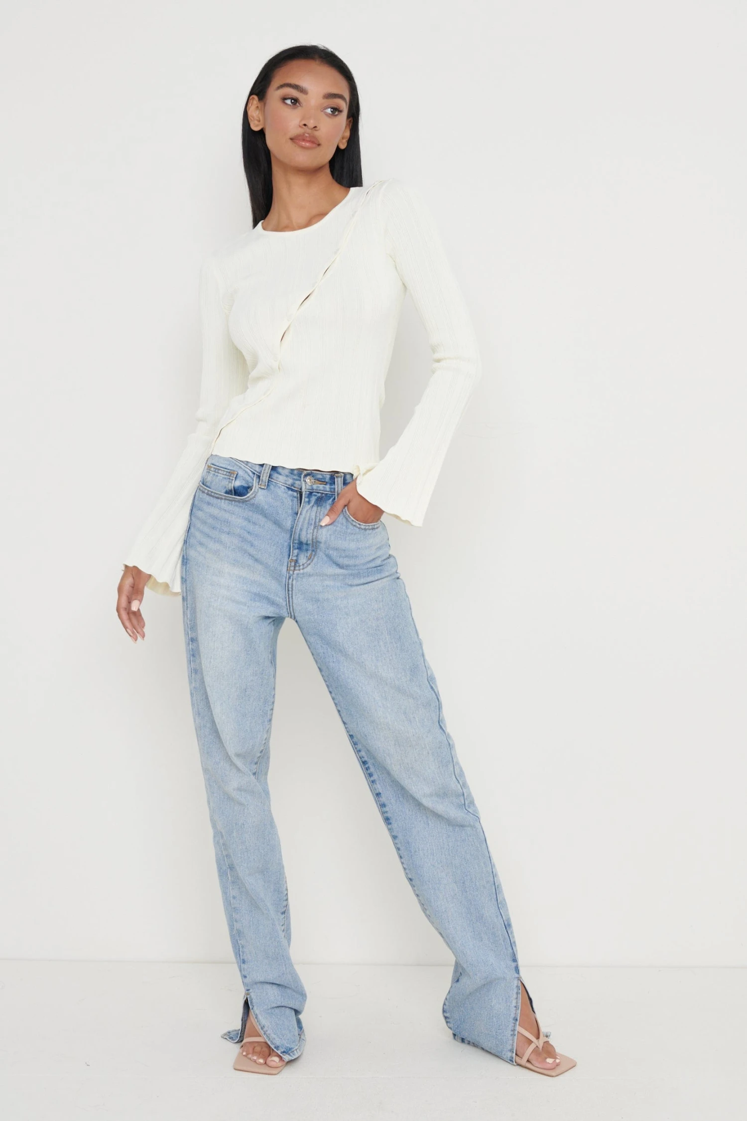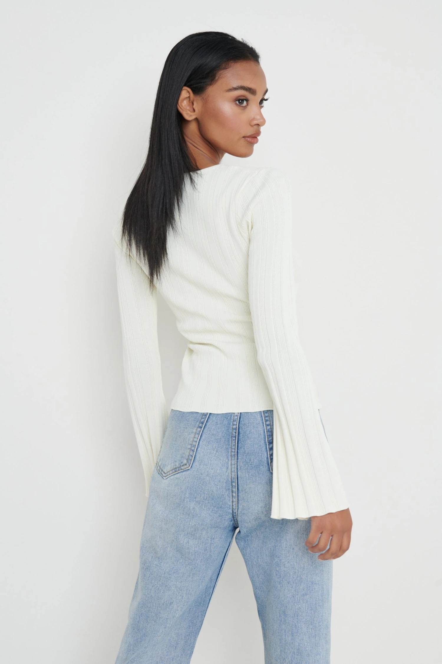 Featured from our Maximal Minimalism September October collection. Made from a figure-hugging plisse knit, the βEdenβ button-front top has a simple silhouette with a fluted sleeve. Wear it casually with denim or dressed up with high-cut trousers.