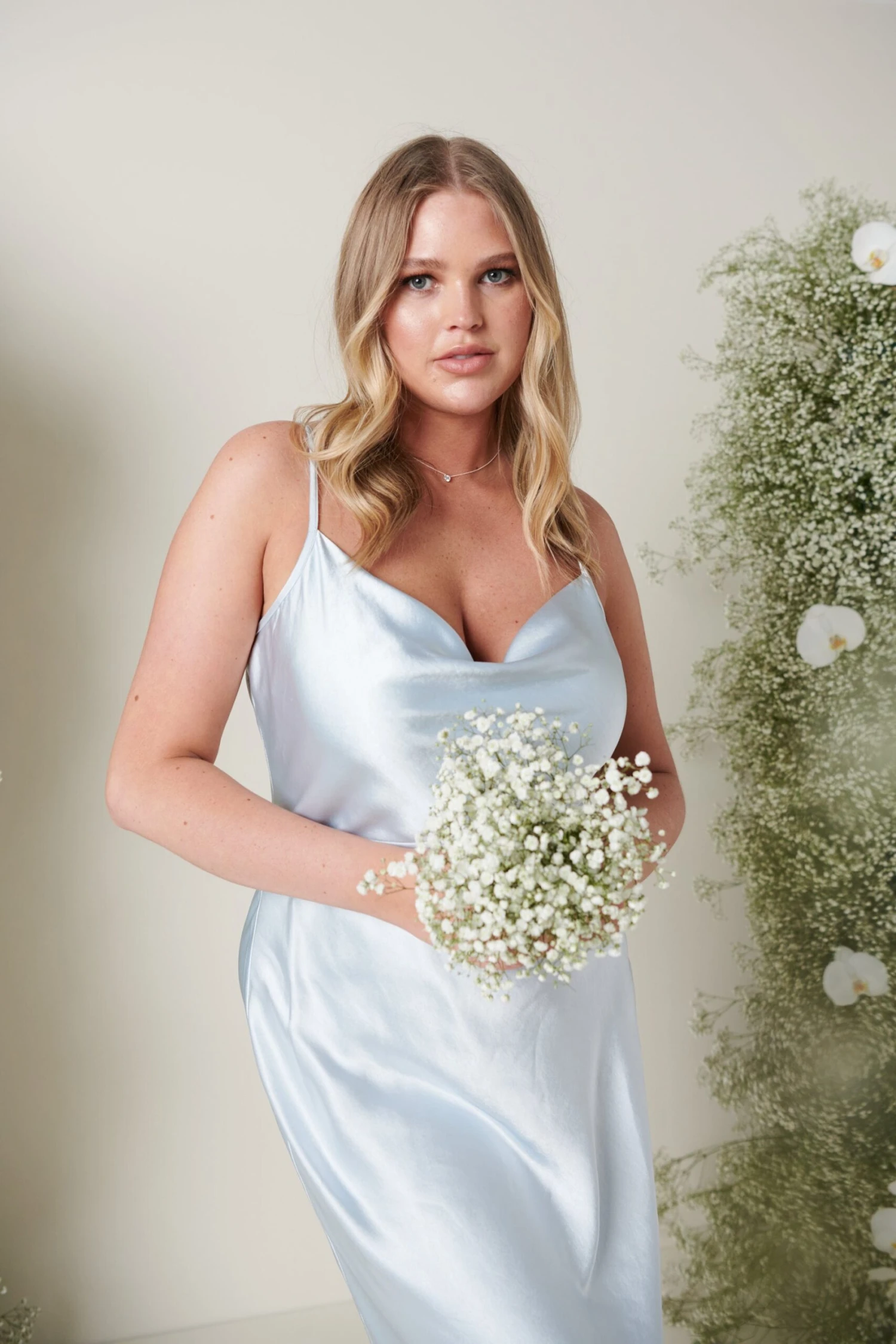 Pair with our other ice blue satin dresses for a modern mix and match bridesmaid look.