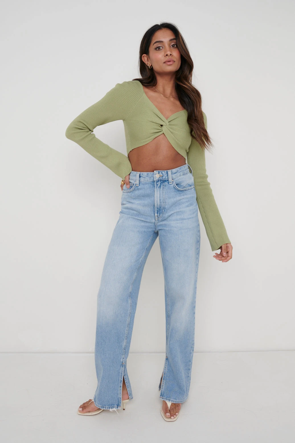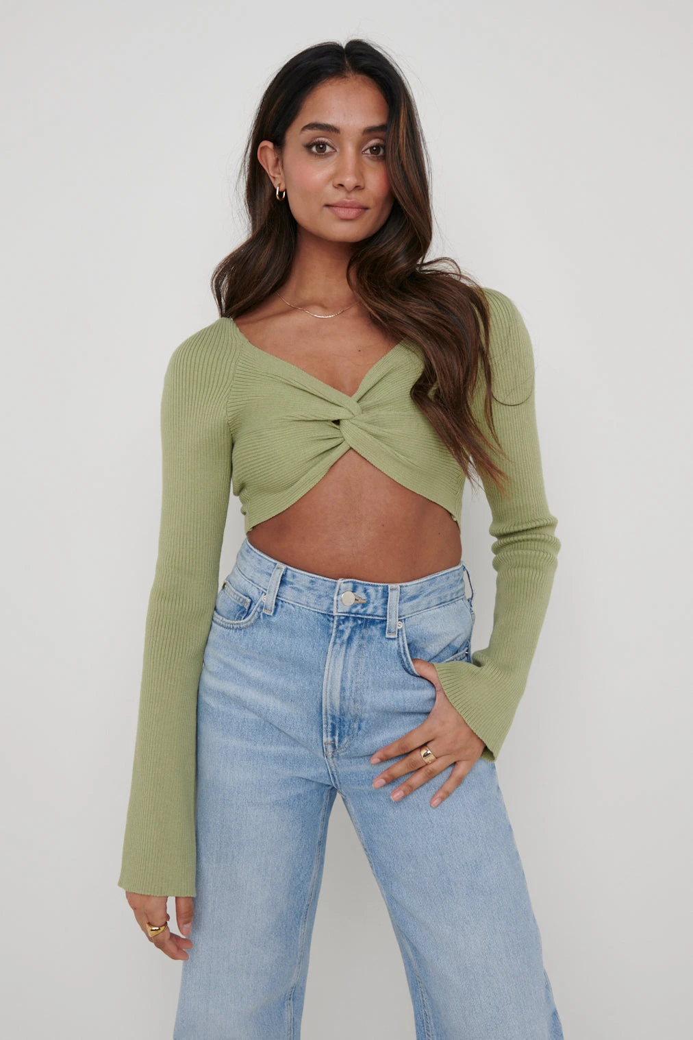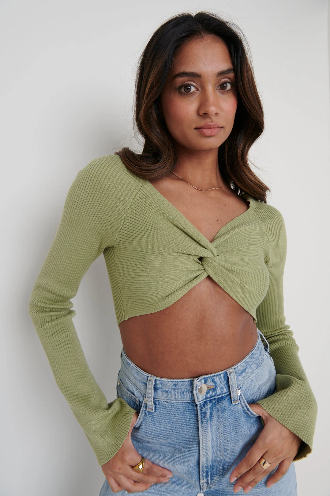 Designed using our luxury recycled ribbed knit. The Maisie top features an interlocked knot detail at the centre and a cropped silhouette. Wear with your favourite jeans or shorts.