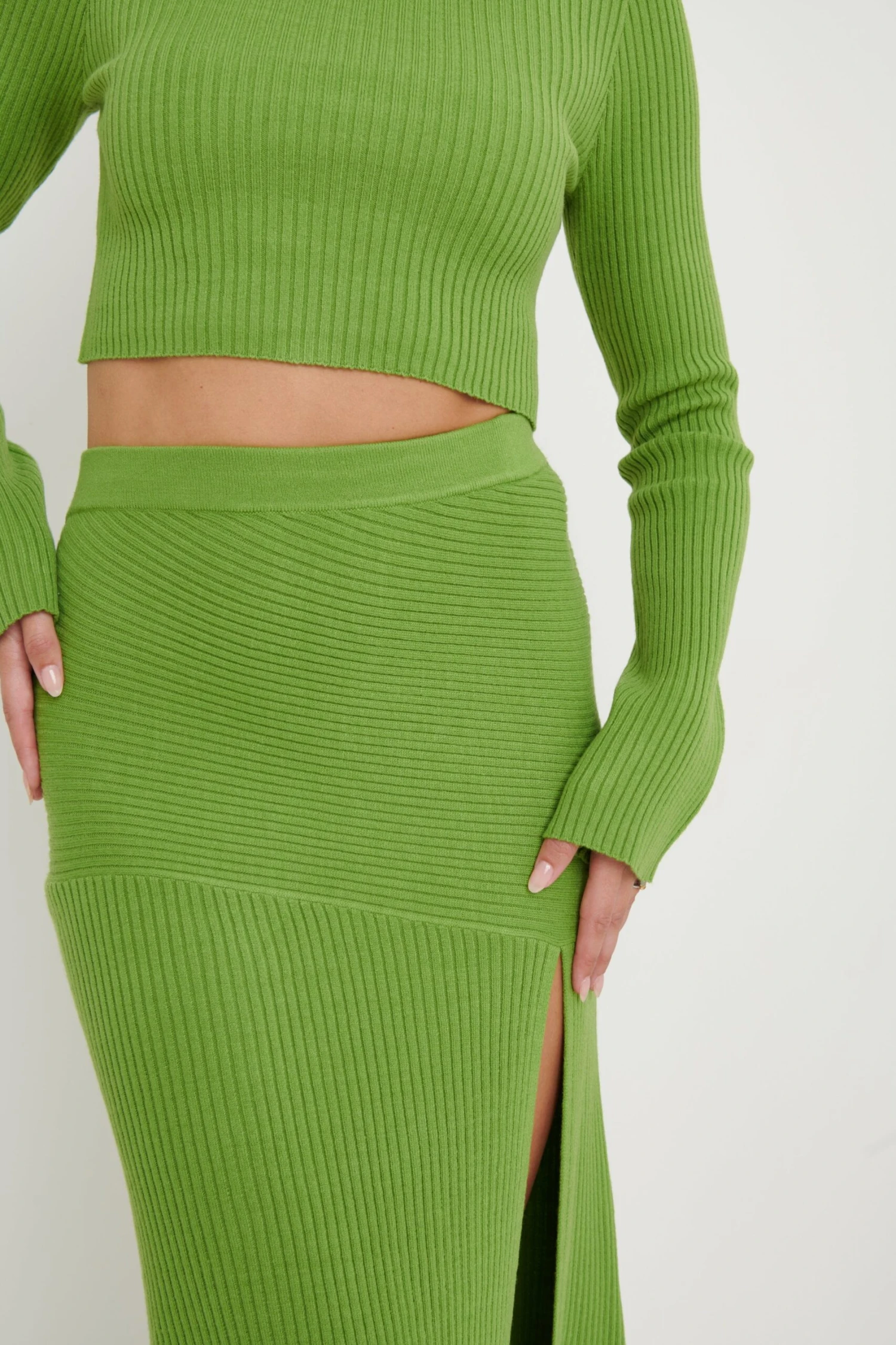 Featured from Senerita July August collection. This set boasts a stunning minimal elevated aura for any occasion. It can take you from brunch to date night effortlessly. Style your Sofia Asymmetric Knit Skirt alone, or with its other piece the Sofia Long Sleeve Knit Top for the full effect.